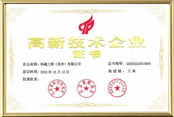 2022年公司荣获江苏省高新技术企业,部分产品通过高新技术产品认定。