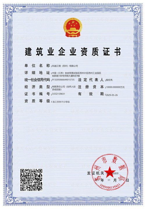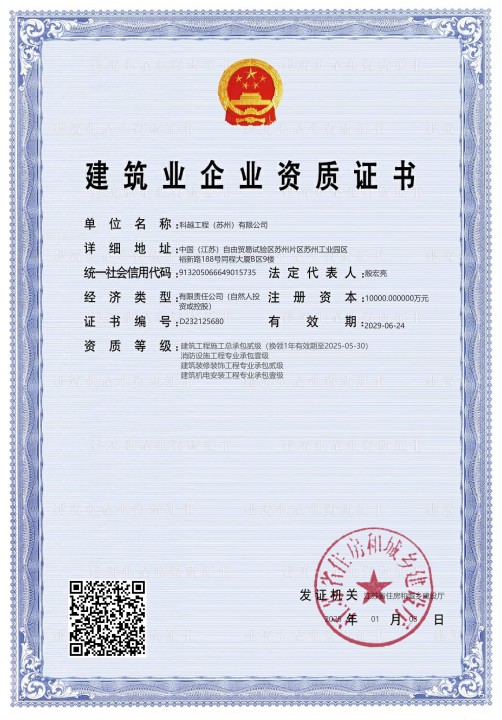 建筑工程施工总承包贰级 消防设施工程专业承包壹级 建筑装修装饰工程专业承包贰级 建筑机电安装工程专业承包壹级